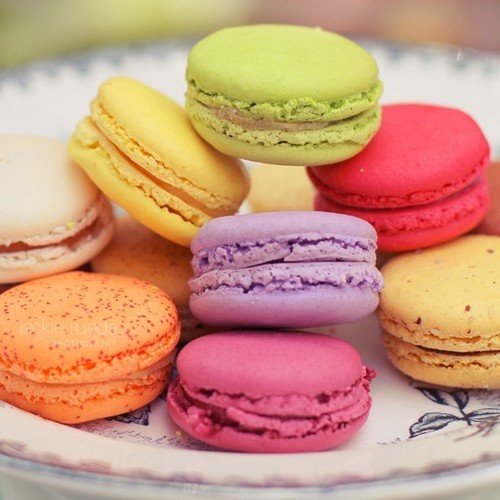 ขนมจะนุ่มชุ่มเล็กน้อยและละลายง่ายในปาก[2] มาการงมีหลากหลายรสชาติ